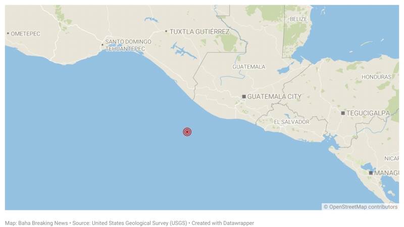 The tremor occurred at a depth of 10 kilometers, 101 kilometers south-southwest of the town of Champerico, which has a population of around 7,800.