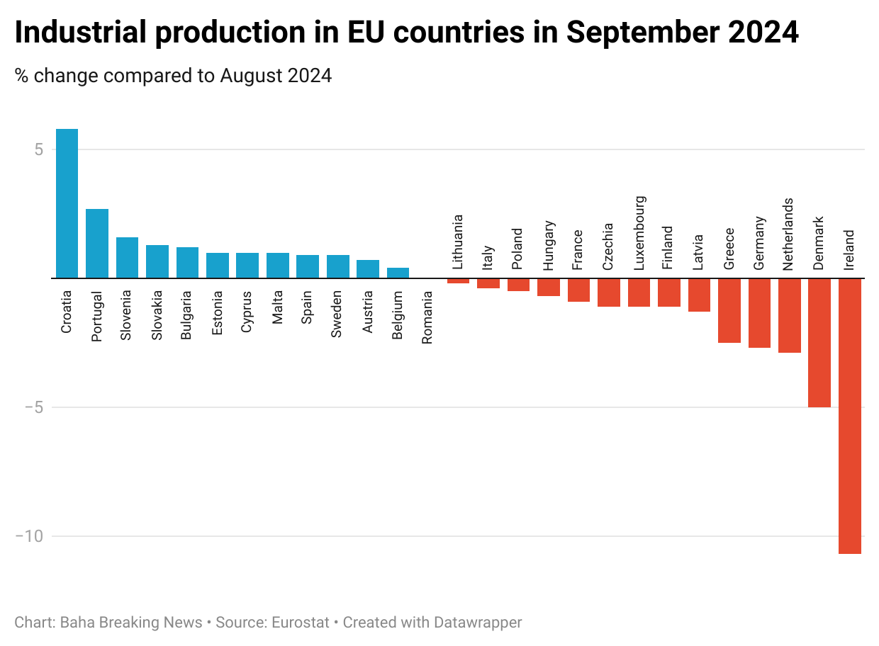 The member state that observed the biggest decrease was Ireland by 10.7%, while the biggest increase was seen in Croatia with 5.8%.