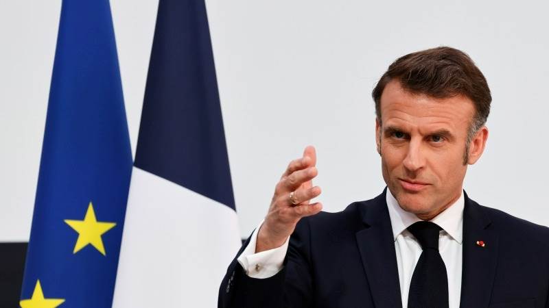French President Emmanuel Macron urged European countries to take a tougher stance against Israel until the humanitarian crisis in the Gaza Strip improves.