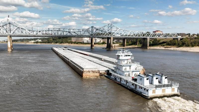 No immediate injuries were reported on the barge. The river was shut down as the power line fell into the water.