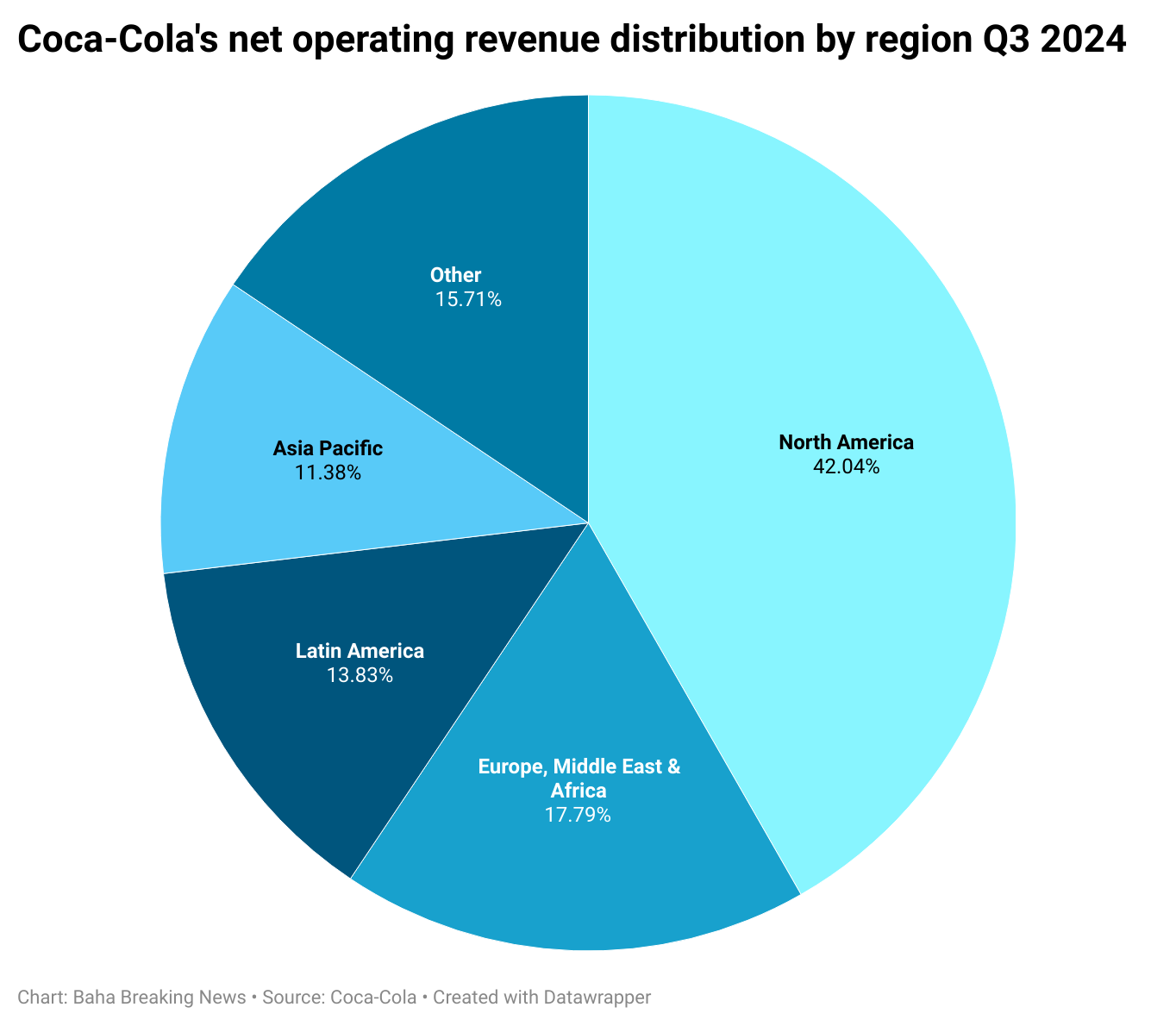 The Coca-Cola Company announced on Wednesday that its net revenue in the third quarter of fiscal 2024 stood at $11.9 billion, decreasing by 1% from the same quarter in the previous year. The company's net income dropped by 8% compared to the same period in the previous year to reach $2.85 billion, while its diluted earnings per share (EPS) declined by 7% and stood at $0.66.